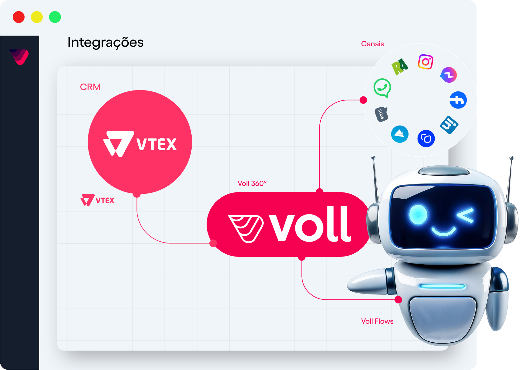 Com o Voll 360º integrado à VTEX, todos os canais: mensagens, voz, notificações e suporte fluem dentro de uma única plataforma. Isso reduz processos manuais, automatiza etapas e garante mais eficiência operacional em cada interação com o cliente.